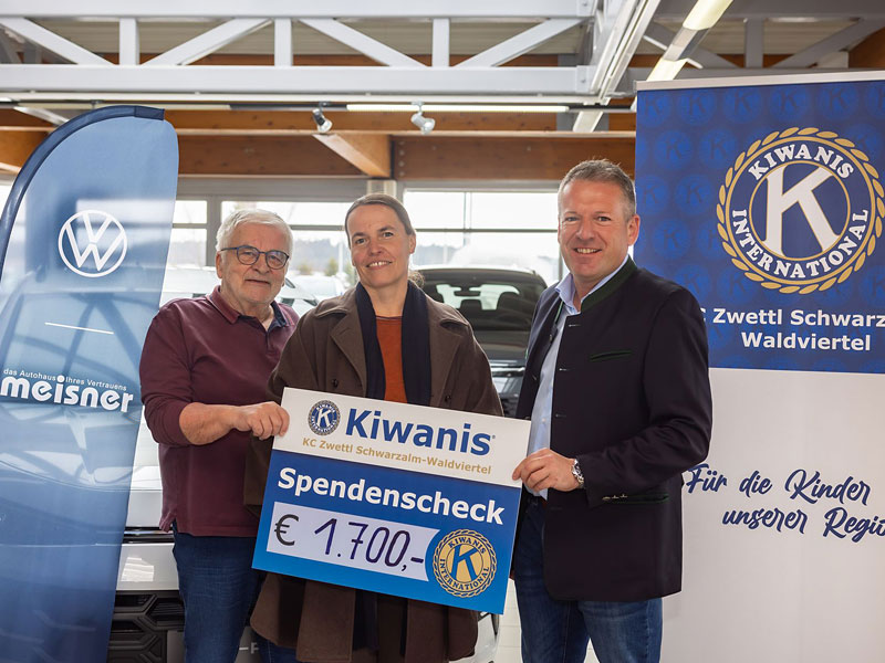 Auf Initiative von Peter Meisner konnte der Kiwanis Club Zwettl wieder hilfsbedürftige Familien unterstützen: Ulrike Völker, eine alleinstehende und -erziehende Mutter von 3 Kindern, benötigte dringend Hilfe. Die Kiwanis Mitglieder Peter Meisner und Sekretär Thomas Reiter übergaben den Spendenscheck.